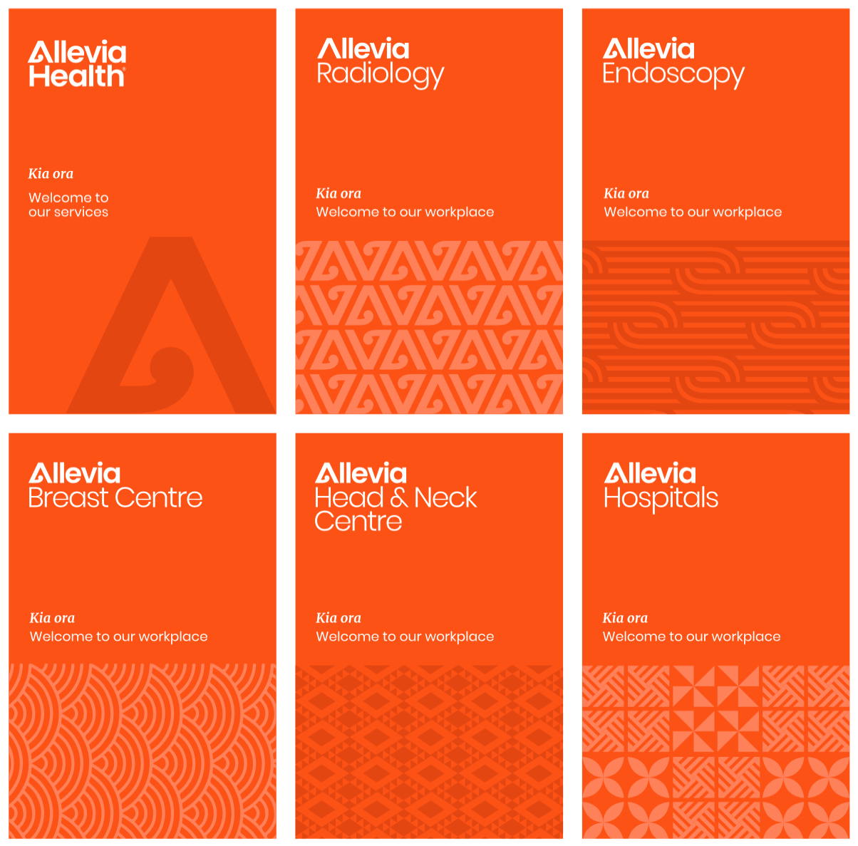 Allevia now spans radiology, hospitals, and specialist services. The visual identity breaks with sterile healthcare norms, instead embracing local symbolism, inclusive language, and a flexible, future-proof system that supports growth and cohesion across all services.